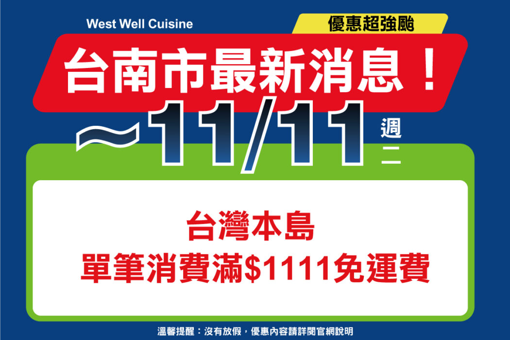 台灣本島地區單筆消費滿$1111,免運費