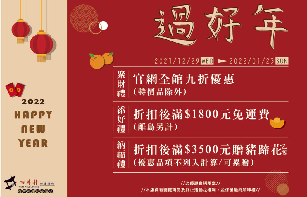 預購期間為2022.12.15-2022.12.22,官網加碼–預購期間加贈冰雞爪凍乙包(隨禮盒出貨),最快出貨日為2022.12.26 (贈品僅限官網訂購,電話/LINE/私訊等皆不適用,訂單內若有購買其他產品會一同出貨,如需分開寄送請分開訂購,請可以接受再下單。)