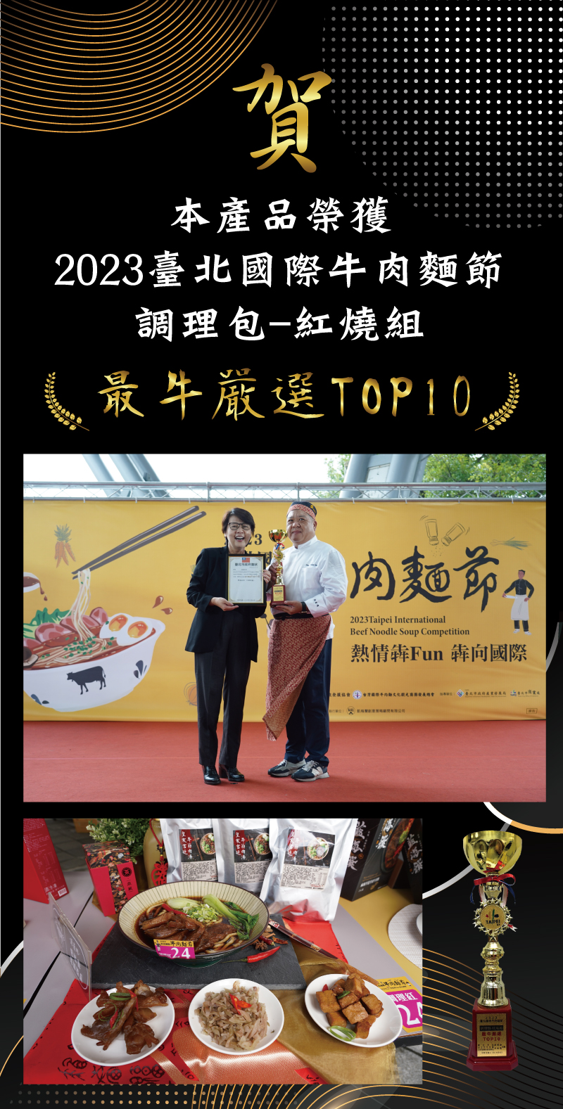 本商品榮獲2023臺北國際牛肉麵節 調理包-紅燒組 最牛嚴選TOP10